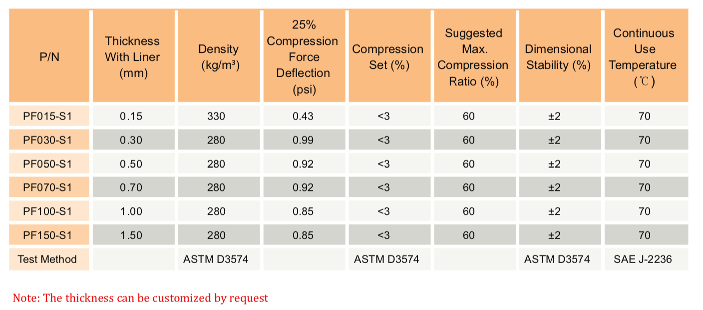 TMPF-S1 系列是一種超柔軟、緩慢回彈的泡棉,用于電子設(shè)備的緩沖、保護(hù)性密封和長期間隙填充??梢赃_(dá)到60%的壓縮比。S1系列泡棉具有極低的壓縮永久變形、高密封性能和優(yōu)異的沖擊吸收性能。" />